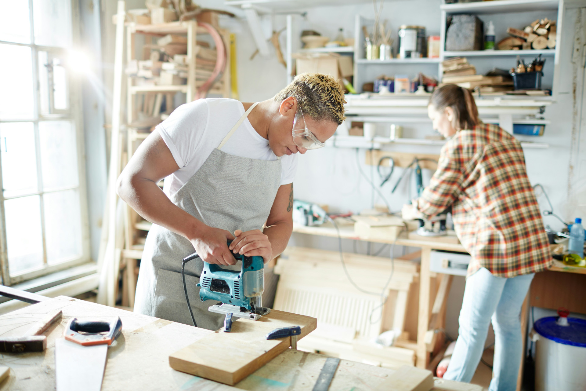 - Teste værktøjets indstilling – se, hvordan saven skærer, eller hvordan høvlen tager fat.